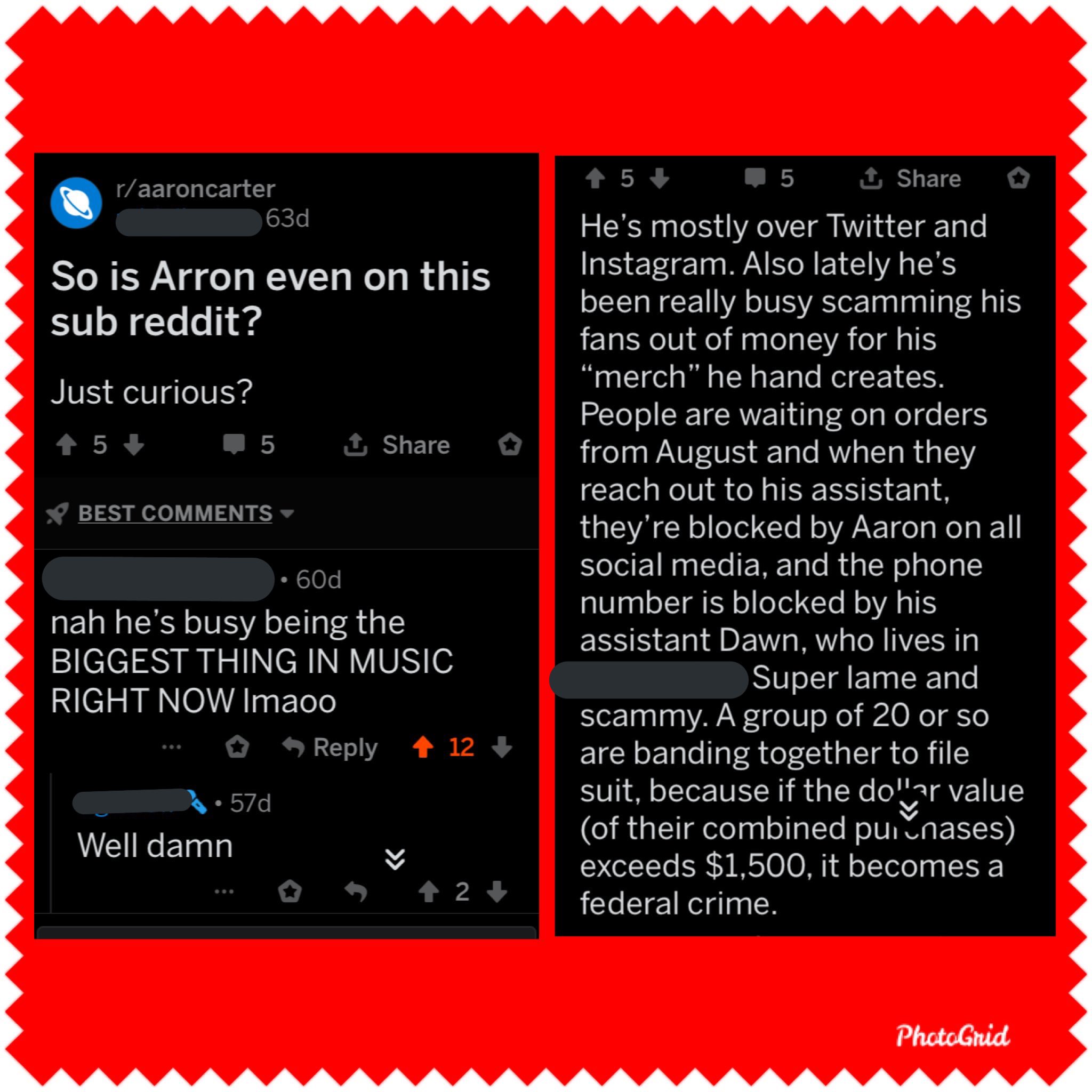 Whatsthetruth2000 On Twitter A Follower Found These Comments Regarding Aaroncarter On Reddit It Appears That 20 Or So People Clearly Disagree With Aaron S Claim Of All Purchaser S Receiving Their Hoodies Scammer Bbb Us